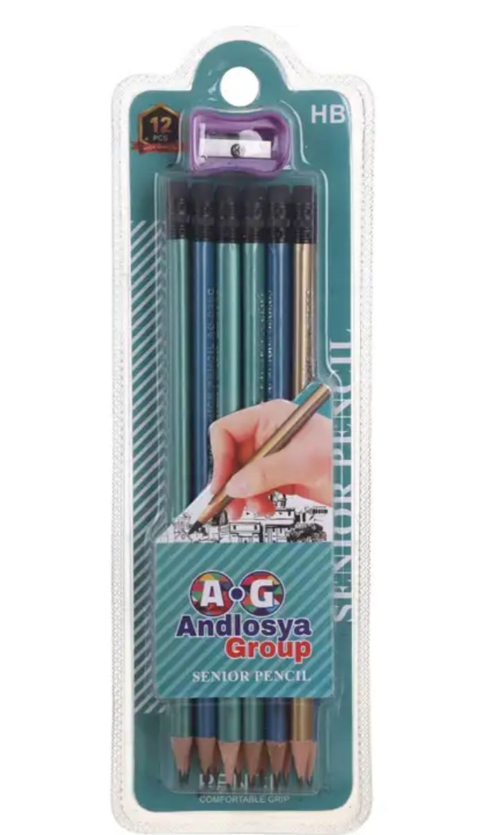 Strip Andalusian Pencil Set – 12 Pcs with Sharpener